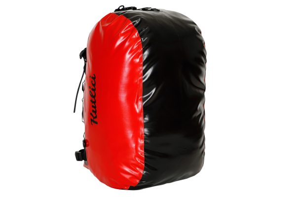 Praktická vodovzdorná vodácká taška o objemu dokonale ochrání vaše věci před pronikající vodou, případně zabrání vaši mokré vodácké výbavě, aby znečistila vás, či vaše auto při transportu. Taška je vyrobena z vodotěsného a oděruvzdorného materiálu vyrobené v EU nejmodernější technologií 3D svařování. Velký vstupní otvor v horní části tašky usnadňuje vkládání věcí dovnitř. Rolovací uzávěr vstupního otvoru, se zajištěním dvěma přezkami upínanými do boku, je současně opatřen ve střední části suchým zipem, aby nedošlo k samovolnému vysypání obsahu tašky po rozrolování. Tato část je dále opatřena dvěma poutky pro snadné odtržení suchého zipu. Celý uzavírací systém je dále pojištěn dvěma stahovacími popruhy s přezkami, které taktéž slouží k kompresi a zmenšení celkového objemu uložených věcí. V místě kotvení bočních přezek a v podélných částech tašky jsou připevněna plastová očka a pásy s průvlaky, sloužící k případnému upevnění celého vaku v lodi, v autě nebo na motorce. Podélné pásy jsou dále opatřeny dvěma očky na každé straně a stahovacími širokými popruhy k přenášení tašky na zádech jako batoh. Ze čtyř stran je taška opatřena reflexními prvky pro lepší viditelnost za tmy. Vodáckou tašku vyrábíme v mnoha barevných kombinacích s vodáckými symboly.