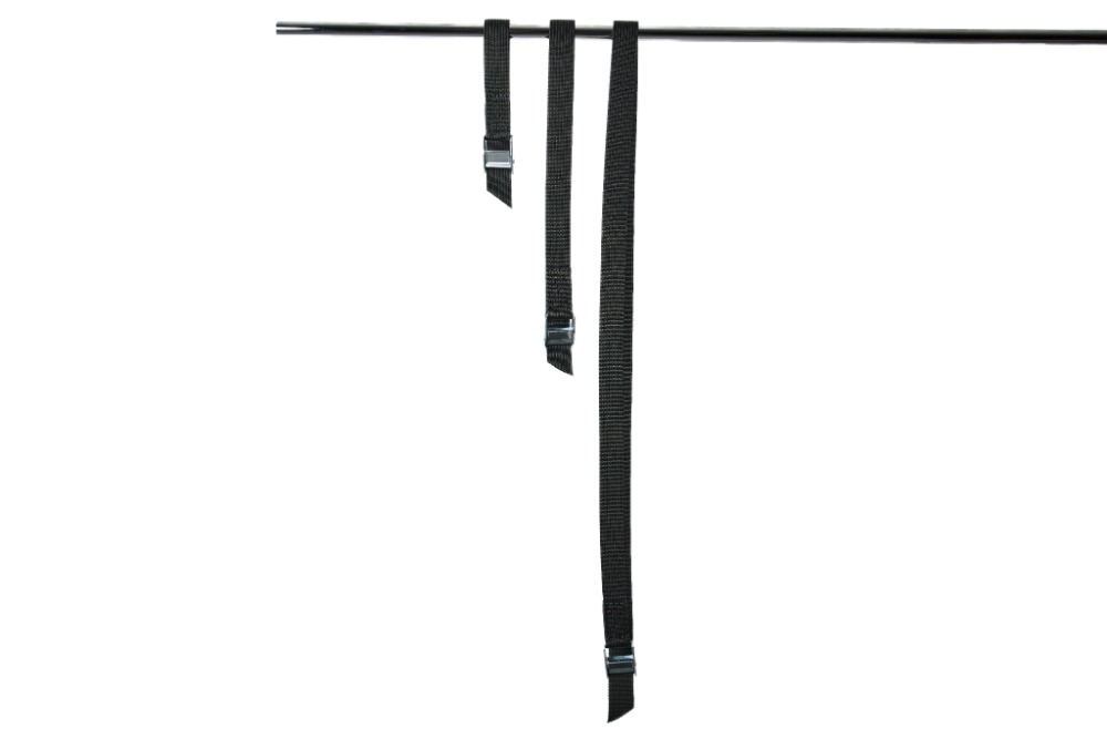 Pevný praktický vázací popruh na připevnění vodácké výbavy do lodi, ale i pádel nebo lyží na autozahrádku. Délka popruhů 35cm, kovová spona šíře 25mm. Balení po 2 kusech.